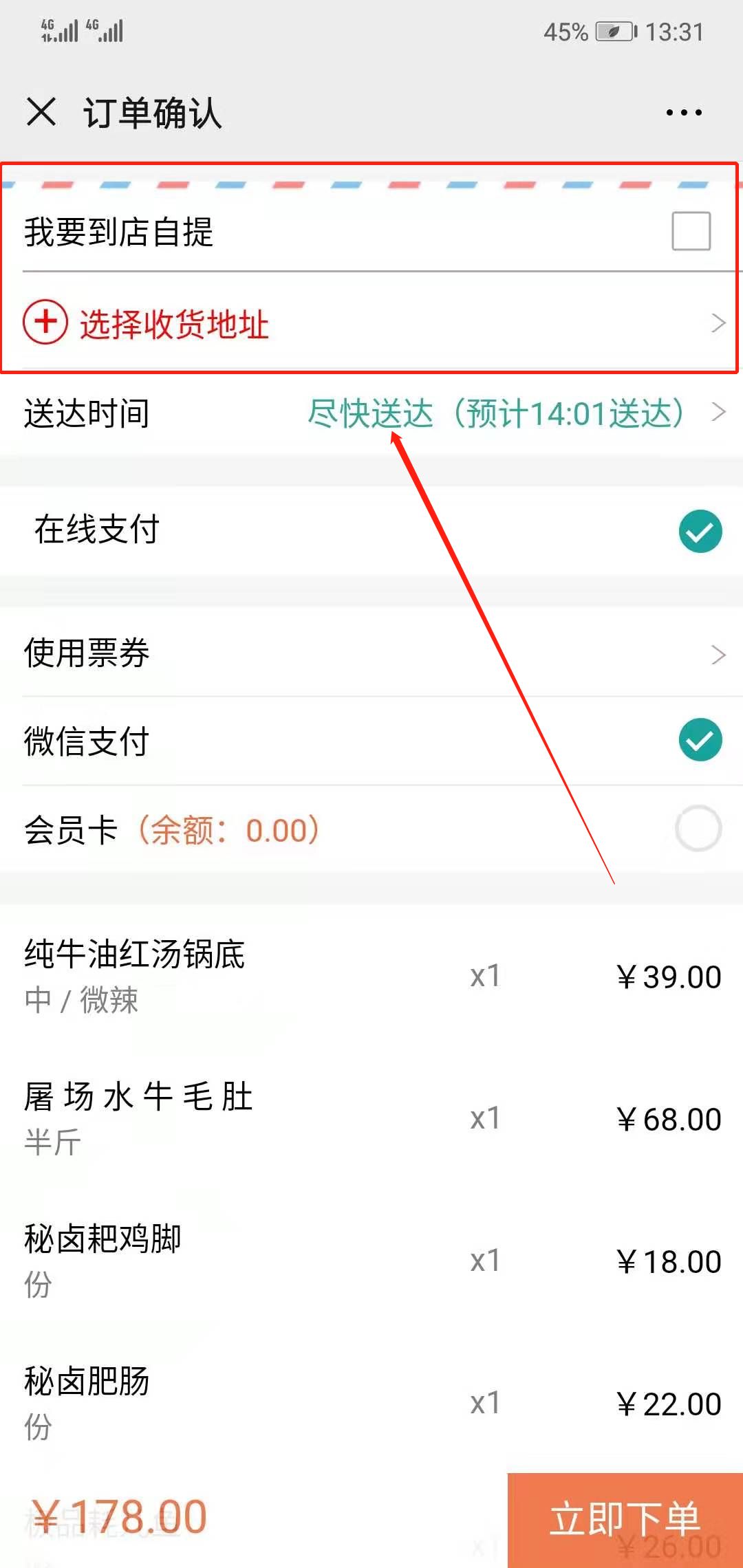 ② 添加地址下单