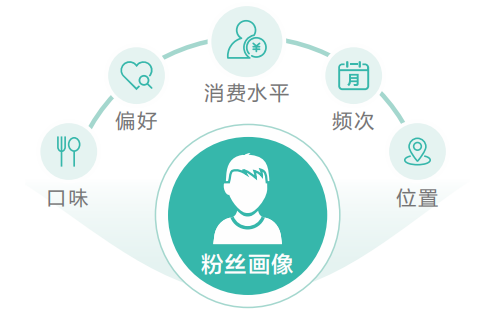 依据消费水平、就餐偏好、口味、 频次、地理位置等数据标签对粉丝进行精准画像,为其提供个性化服务,增加粉丝对商家的黏性。