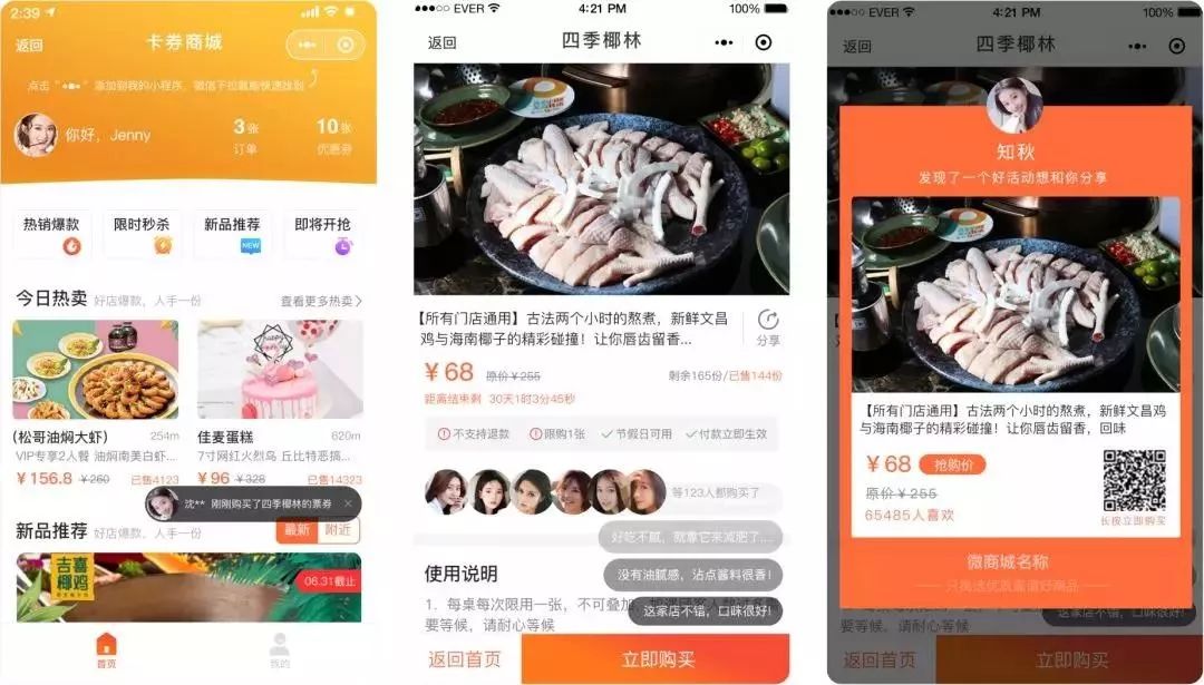 3、商品套餐促销活动。通过排队网微商城,提前从公众号推出活动预告,引导粉丝从公众号菜单栏点击进入商城入口,参与优惠商品活动。