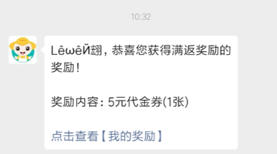 5、通过排队网轻会员功能,设置消费满返奖励,消费者付款成功后,即可收到公众号推送的满返奖励消息,不仅能满足消费者需要优惠心理,同时也为自己公众号顺势涨了一波流量。