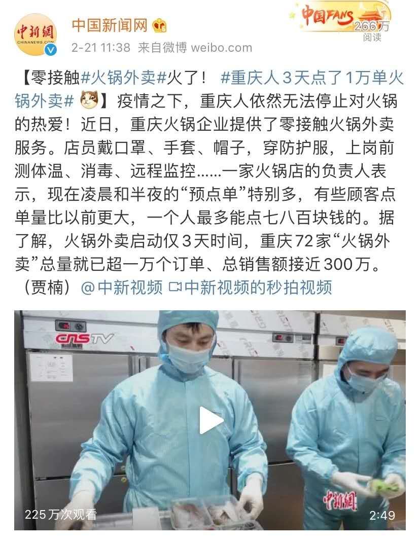 #重庆人3天点了1万单火锅外卖# #武汉外卖1天13万单#疫情之下,也推动外卖新一轮的爆发。