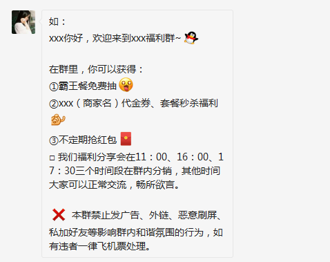 没有什么比抢红包和抽取霸王餐来的更加简单粗暴更有吸引力,不定期在群内发放现金红包和霸王餐抽奖,绝大部分用户都会点击微信群进行抢红包或参与抽奖,这样能有效刺激群活跃,带动群内气氛,保持社群的温度。